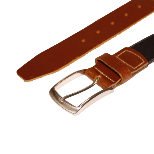 Deze mooie elastische riem met echt leren flap in bruin leer voor heren in de kleur zwart. Deze riem is past goed in een jeans. Doordat die elastisch is geeft de riem goed mee zodat je deze niet strak aanvoelt. Mooie zilverkleurige gesp. De breedte van de riem is 35 mm en de dikte van het leer ± 3,0mm.